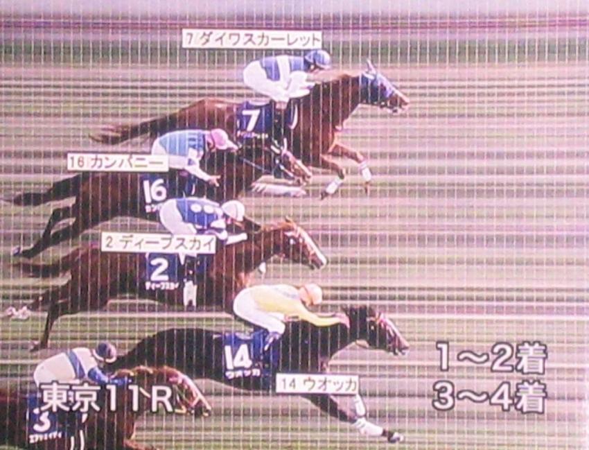 다이와 스칼렛을 본 딥 스카이는 기어를 변경, 사력을 다해 더비 제패때 이상의 호각을 보이며 맹렬히 달리며 보드카까지 제치려 하지만