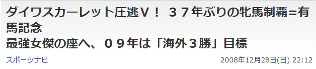 「37년만의 암말 아리마 기념 우승! 다이와 스칼렛!!」
